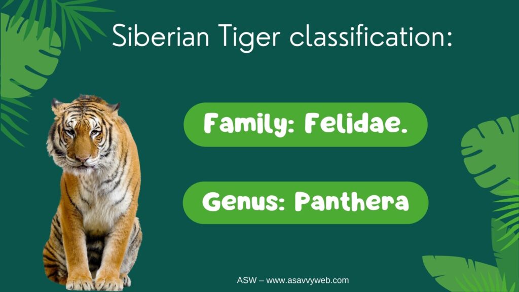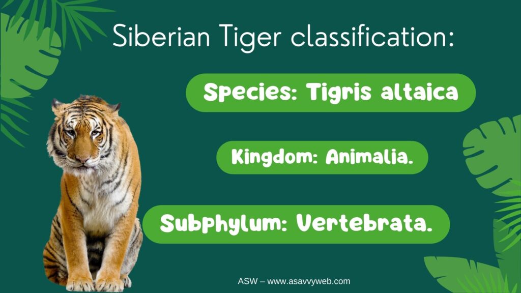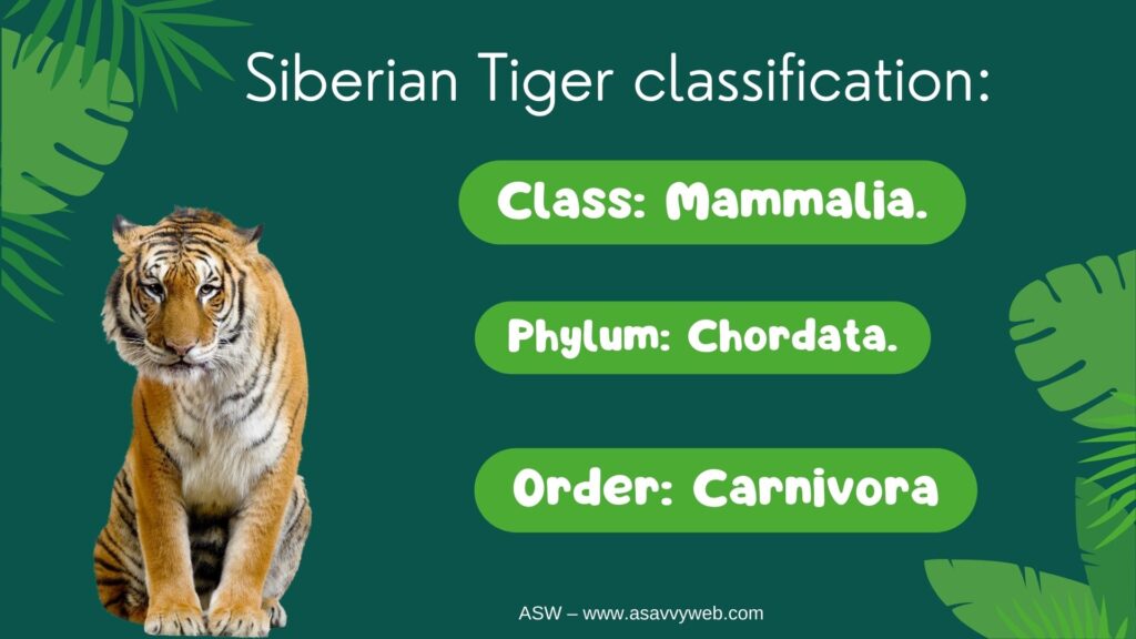 Higher classification of Siberian tiger or Amur tiger is Tiger and large subspecies of tiger.