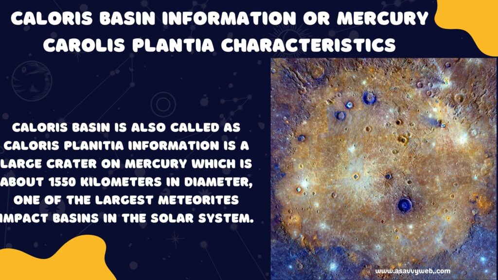Caloris Basin is also called as Caloris planitia information is a large crater on mercury which is about 1550 Kilometers in diameter, one of the largest meteorites impact basins in the solar system.