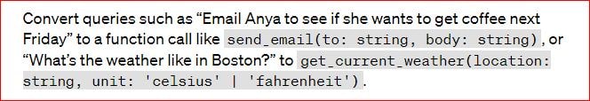 Using Functional Calling users can also convert queries send email, get current weather and also convert natural language into API calls or database queries.