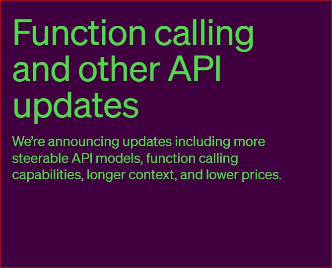 All these functional use cases are enabled by the NEW API parameters in /v1/chat/completions endpoints, functions and function_call which allows developers to defined in function parameter.