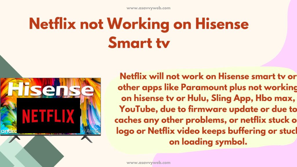 Netflix will not work on Hisense smart tv or other apps like Paramount plus not working on hisense tv or Hulu, Sling App, Hbo max, YouTube, due to firmware update or due to cache data of apps or any other problems.