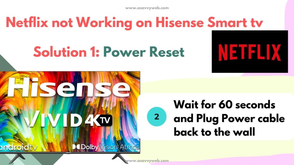 This is the simplest way of Solving issue on hisense smart tv, unplugging and plugging back is different from power off and ON and this will reset your tv and open Netflix app on your hisense smart tv and check, this should solve Netflix not working on hisense smart tv.