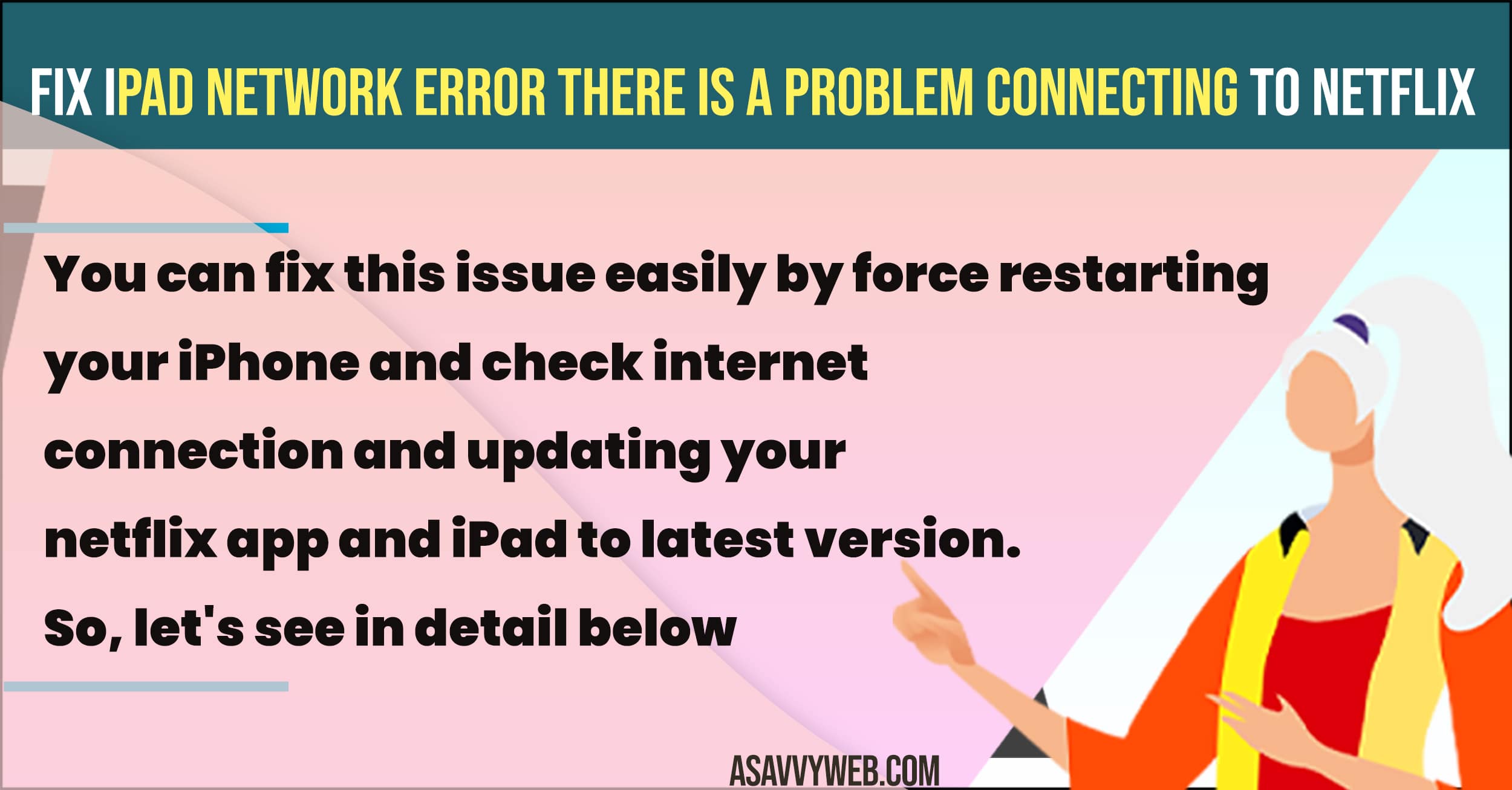 On your iPad if your are getting an error message when opening netflix and trying to watch video on netflix on your iPad and getting an error message “Network Error There is a Problem Connecting to Netflix” or when playing video or when opening netflix on iPad then you can fix this issue easily by force restarting your iPhone and check internet connection and updating your netflix app and iPad to latest version. So, let’s see in detail below.