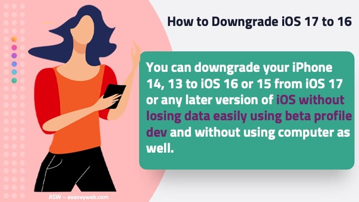 You can downgrade your iPhone 14, 13 to iOS 16 or 15 from iOS 17 or any later version of iOS without losing data easily using beta profile dev and without using computer as well.
