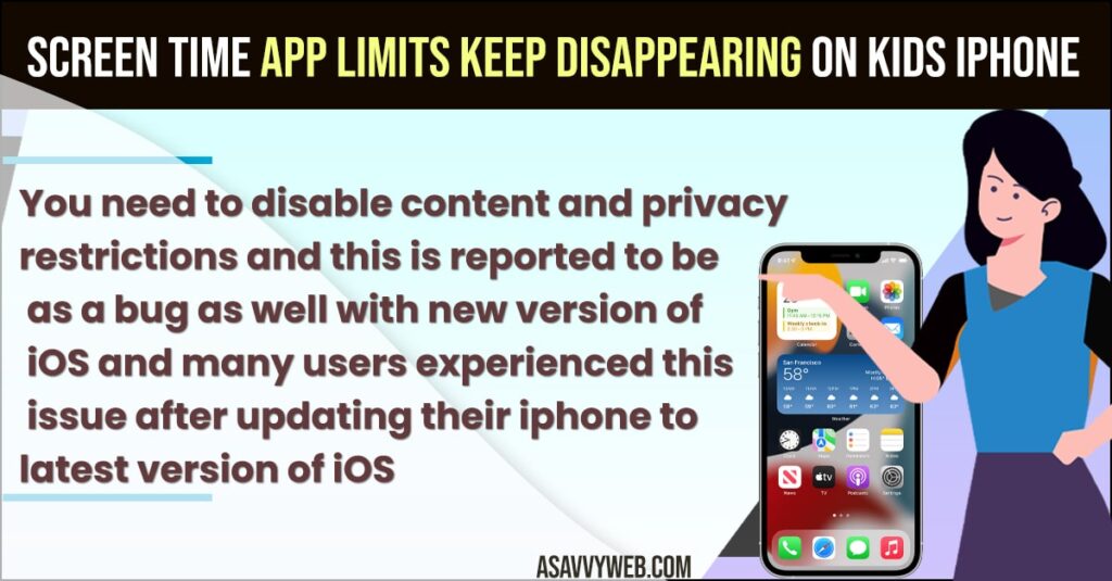 On your iPhone if your screen time app limit keeps disappearing on kids iPhone then this is due to screen time limitations itself and you need to disable content and privacy restrictions and this is reported to be as a bug as well with new version of iOS and many users experienced this issue after updating their iPhone to latest version of iOS on iPhone 13, 14 etc. So, let’s see in detail below.