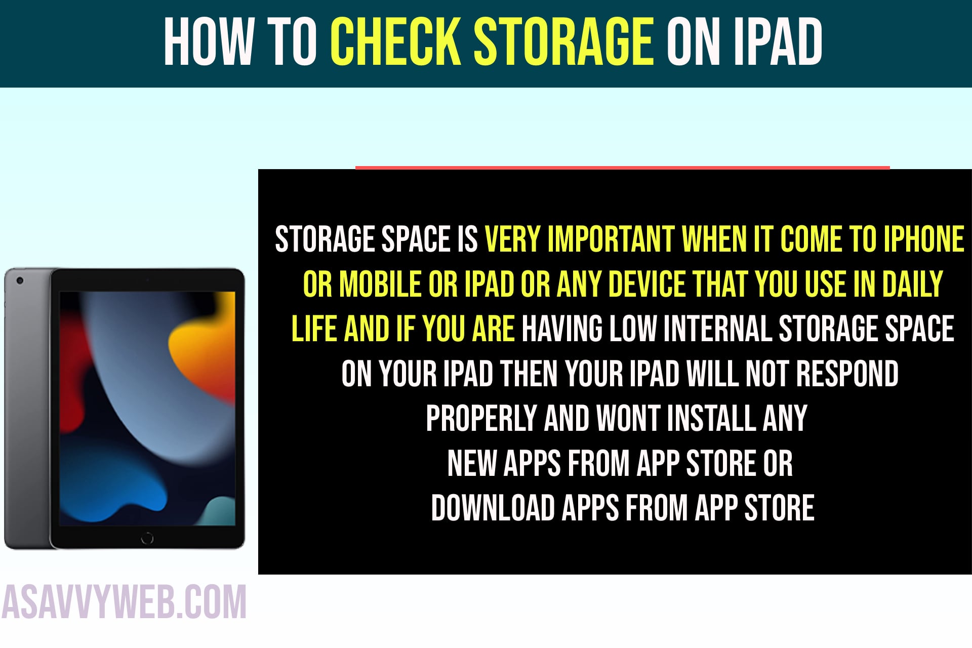 You can check your ipad storage by going to settings and see how much free storage space is available and how much space is occupied on your iPad.