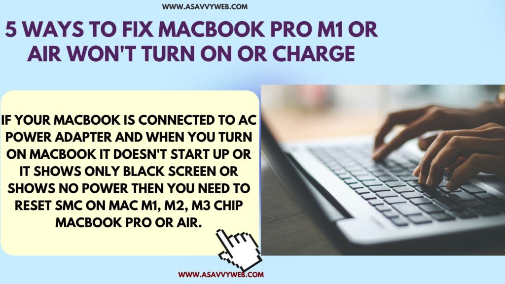 If your macbook is connected to AC power adapter and when you turn on MacBook it doesn’t start up or it shows only black screen or shows no power then you need to reset SMC on mac M1, M2, M3 chip MacBook pro or air.