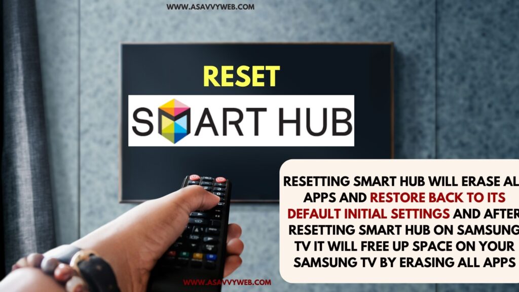 Resetting smart hub will erase all apps and restore back to its default initial settings and after resetting smart hub on samsung tv it will free up space on your Samsung tv by erasing all apps installed on your tv but it will not erase or delete preinstalled apps on samsung tv.