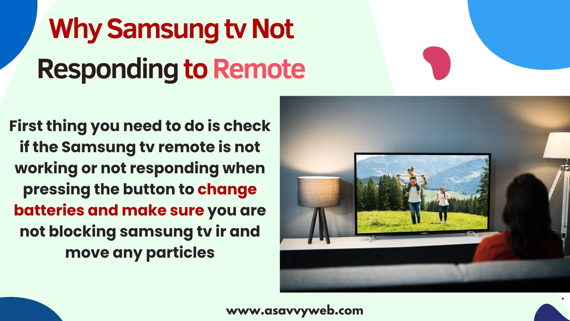 Mostly these are the main issues if the remote does not respond on your samsung tv is due to bad battery, dust or debris stuck inside remote, remote got damaged (if its dropped accidentally) becomes defective, blocking remote sensors or remote is not in range of samsung tv.