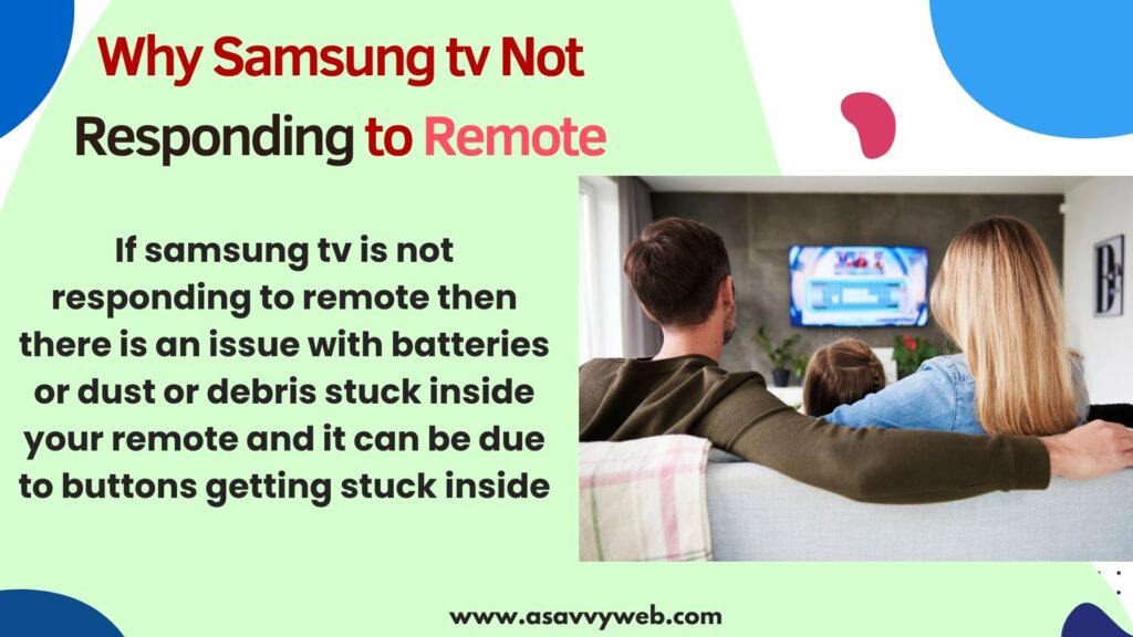 If Samsung tv is not responding to remote then there is an issue with batteries or dust or debris stuck inside your remote and it can be due to buttons getting stuck inside sometimes and also cause Samsung tv remote not responding to remote.