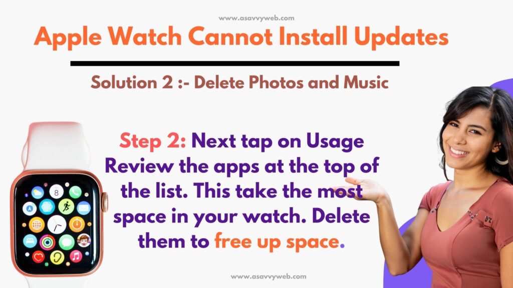 Step 2: Next tap on Usage Review the apps at the top of the list. This takes the most space in your watch. Delete them to free up space.