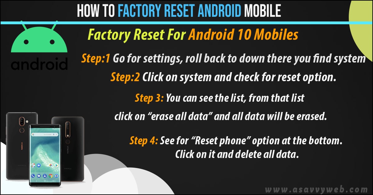 Factory reset For Android 10 Mobiles: