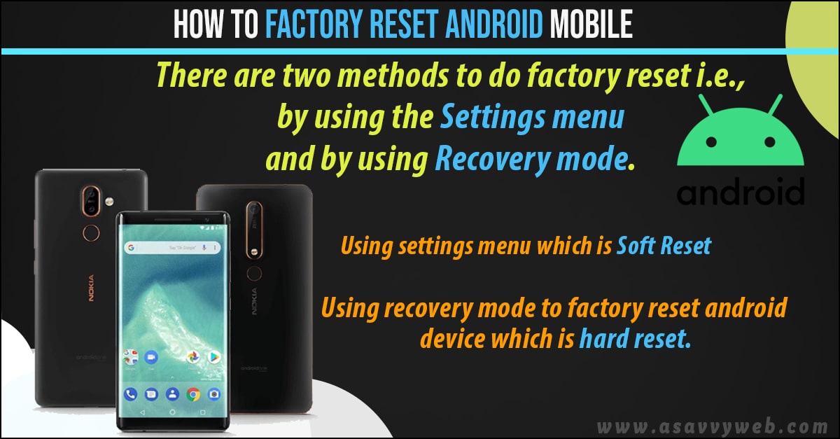 There are two methods to do factory reset i.e., by using the settings menu and by using recovery mode.