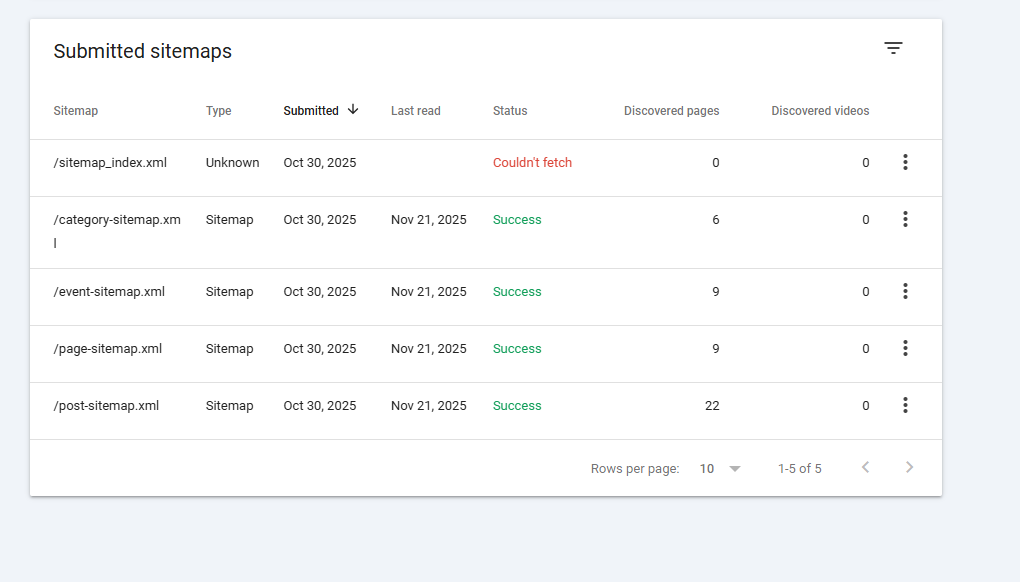 Step 3: Under submitted sitemaps section you will see a list of submitted sitemaps.