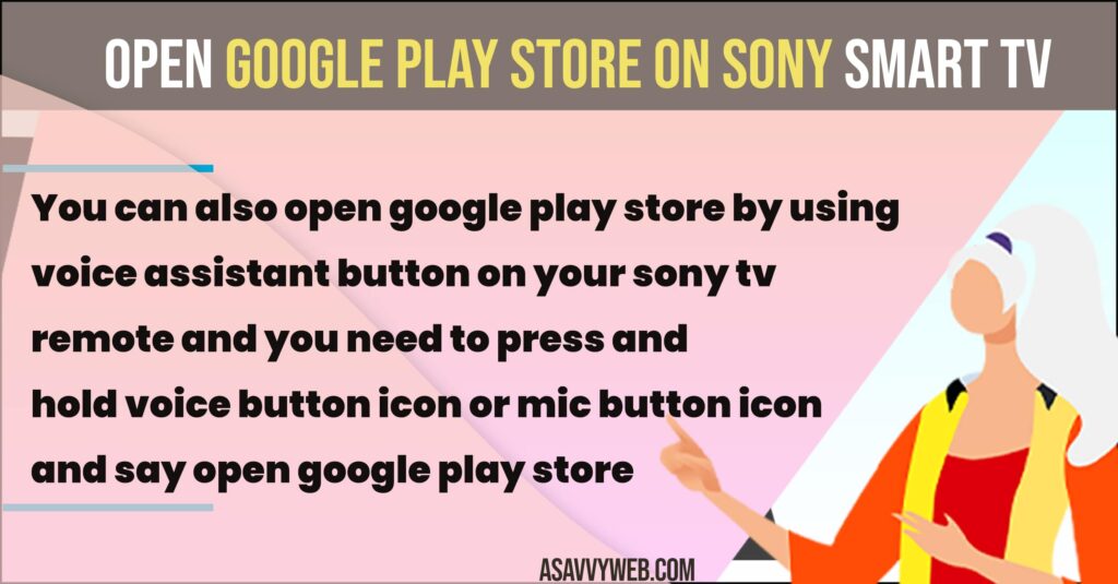You can also open google play store by using voice assistant button on your sony tv remote and you need to press and hold voice button icon or mic button icon and say open google play store and it will open google play store on sony bravia smart tv.