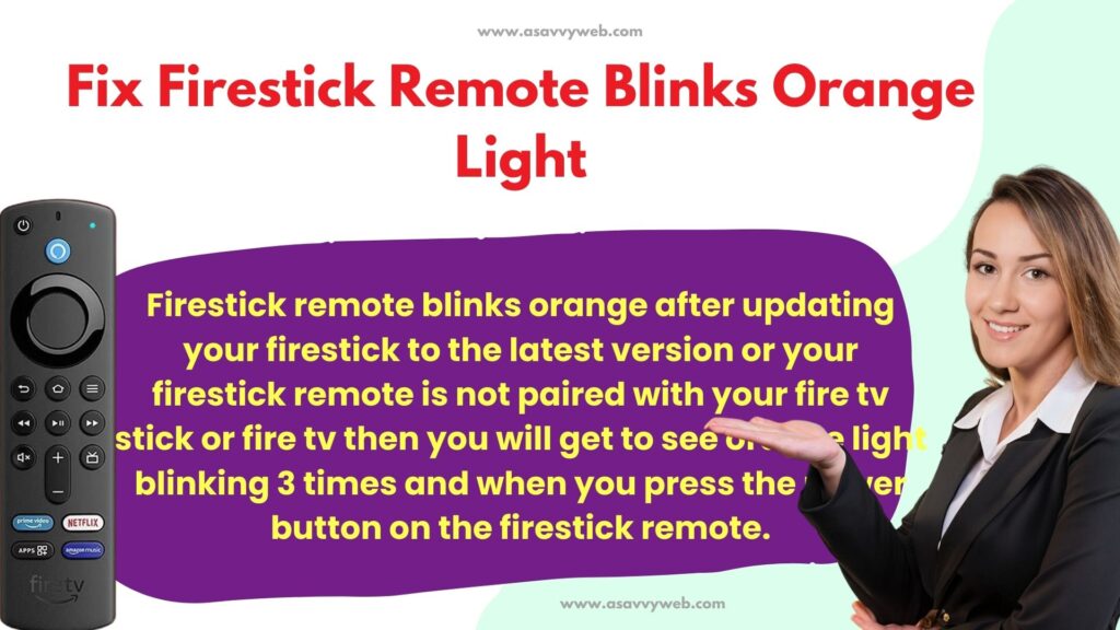 Firestick remote blinks orange after updating your firestick to the latest version or your firestick remote is not paired with your fire tv stick or fire tv then you will get to see orange light blinking 3 times and when you press the power button on the firestick remote.