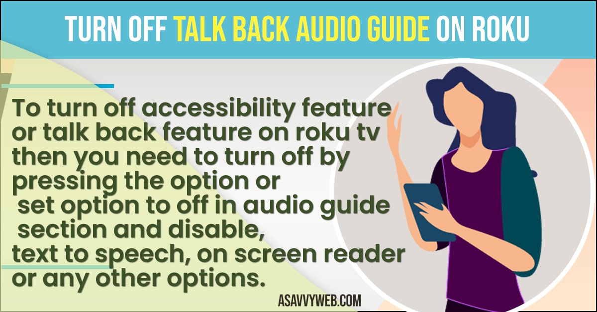 To turn off accessibility feature or talk back feature on roku tv then you need to turn off by pressing the option or set option to off in audio guide section and disable, text to speech, on screen reader or any other options.