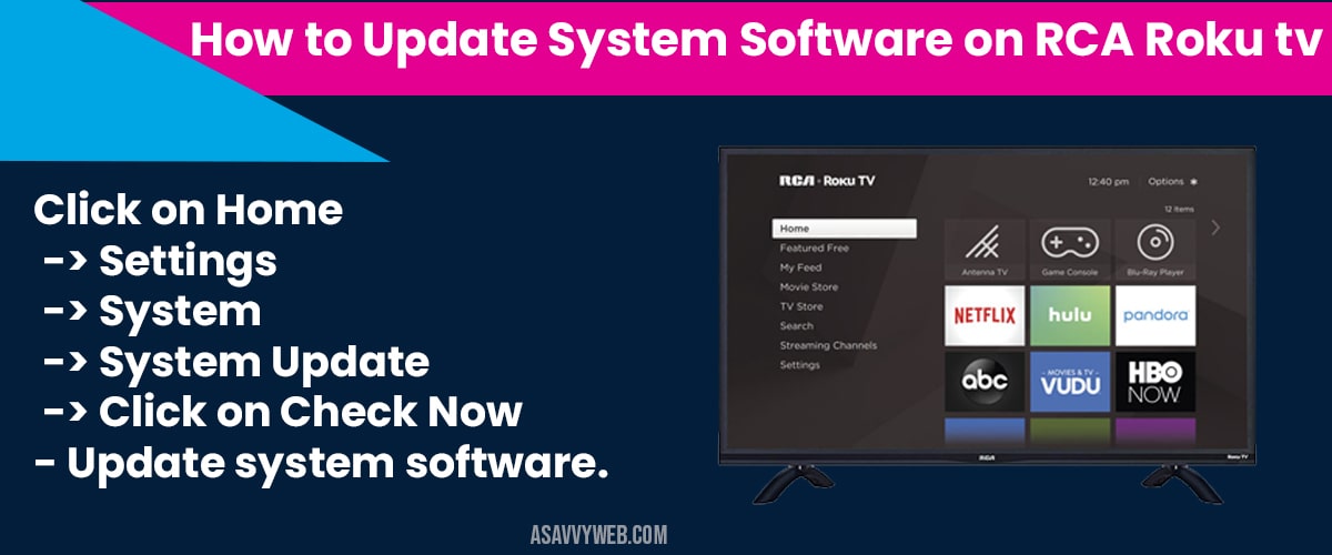 If you are having outdated system software on your RCA Roku tv then you need to update system software on RCA Roku tv to latest RCA Roku system firmware update. Roku tv updates system software and fixes the bugs in previous version and roll a new system software on RCA Roku tv’s. If you update software on your RCA Roku tv then you will not be having any issues like apps not loading, RCA Roku tv stuck on logo, RCA Roku tv keeps restarting and other issues. In order to get rid of these issues, its important to update software on Roku tv. Let’s see in detail how to update RCA Roku tv.