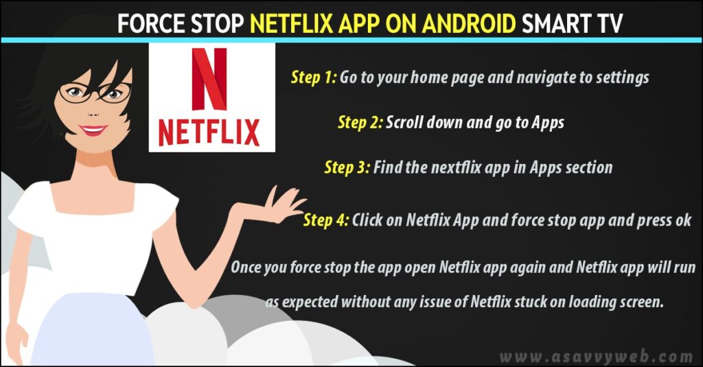 Force Stop Netflix app on Android Smart tv to fix Netflix stuck on loading screen