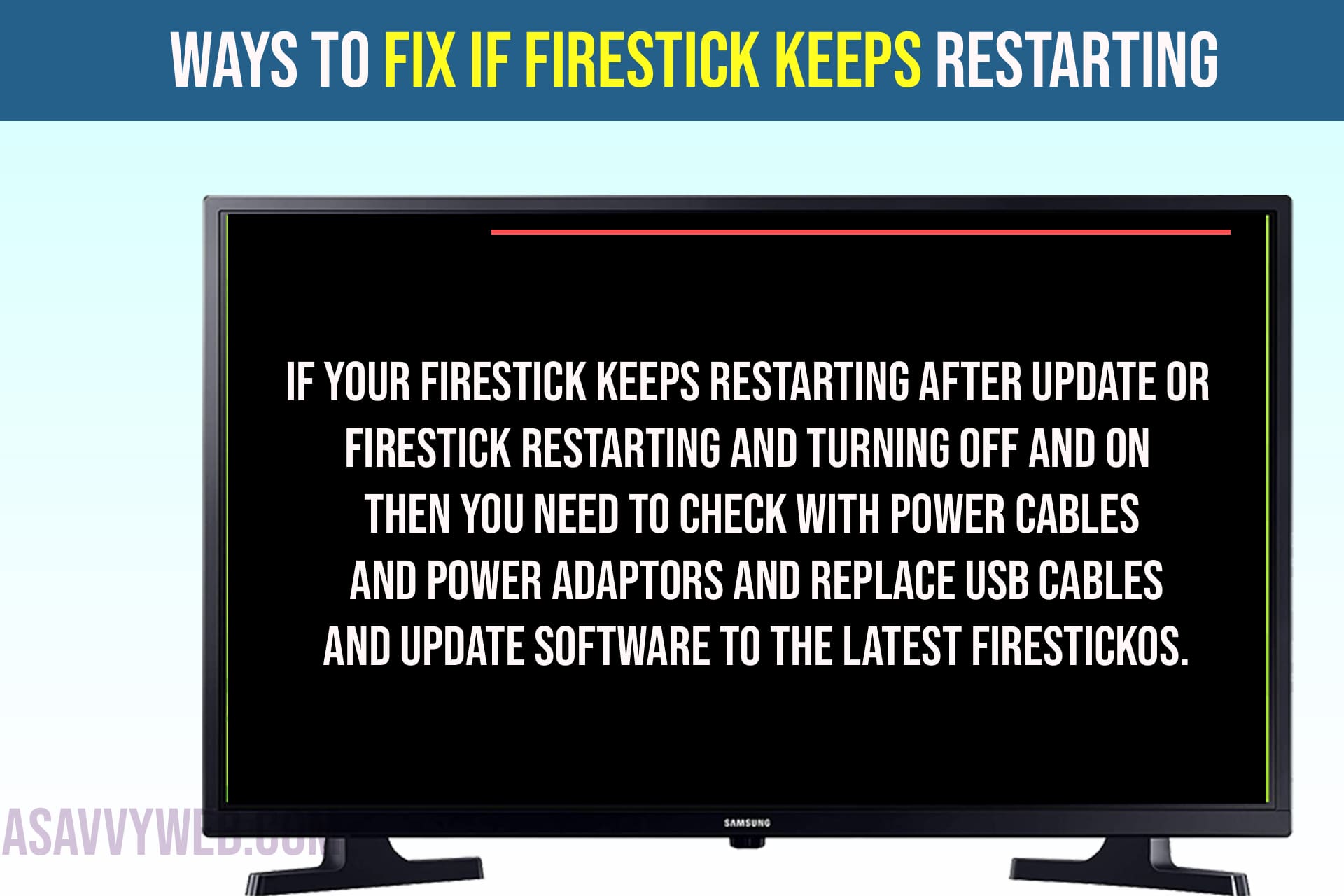 If Your firestick keeps restarting after update or firestick restarting and turning off and on then you need to check with power cables and power adaptors and replace usb cables and update software to the latest firestickOS.