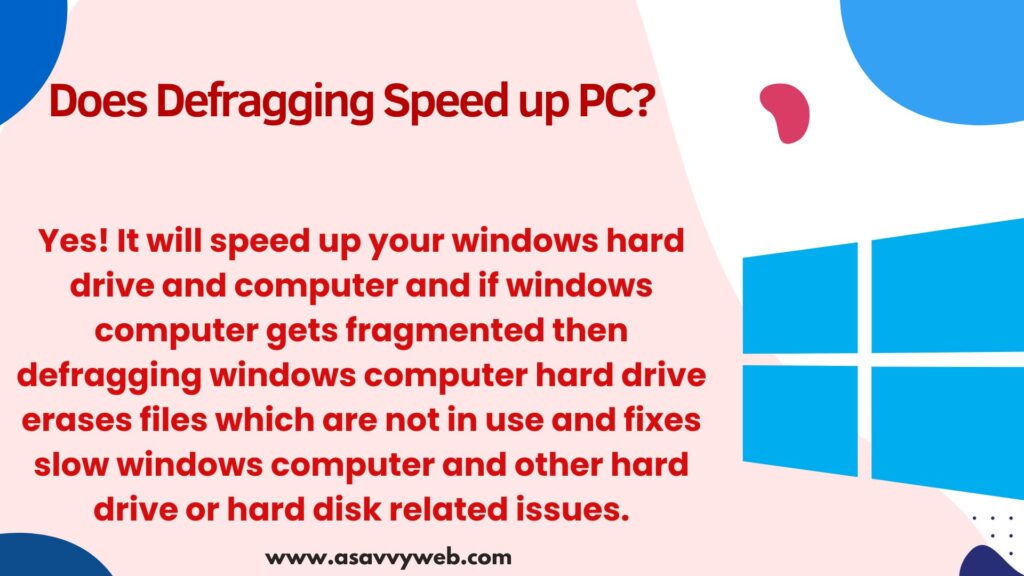 Yes! It will speed up your windows hard drive and computer and if windows computer gets fragmented then defragging windows computer hard drive erases files which are not in use and fixes slow windows computer and other hard drive or hard disk related issues.
