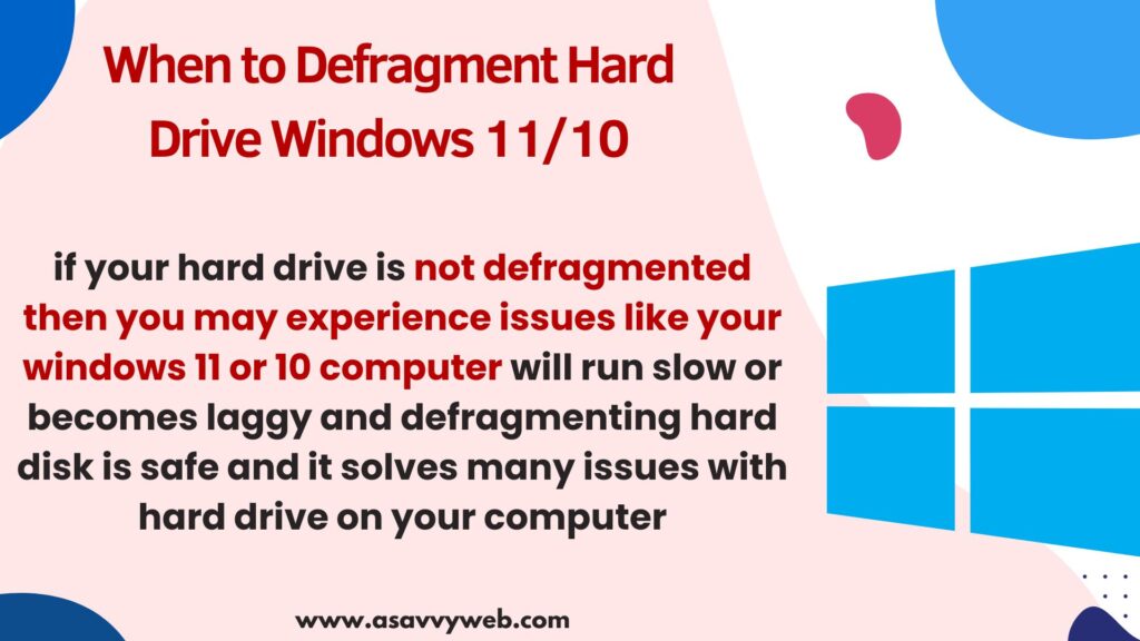 Defragment hard drive is necessary and defragment is optimizing your hard drive and if your hard drive is not defragmented then you may experience issues like your windows 11 or 10 computer will run slow or becomes laggy and defragmenting hard disk is safe and it solves many issues with hard drive on your computer.
