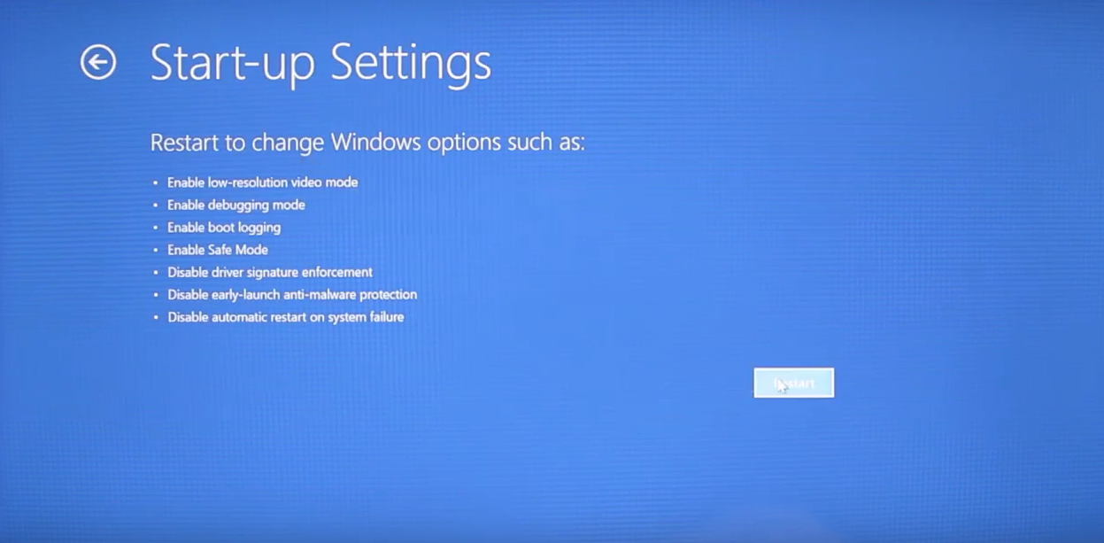 Step 10: If you suspect your security software could be causing the problem you can try 8 which disables early launch of anti-malware protection.