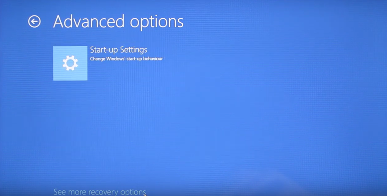 Step 4: Click on see more recovery options and then start up settings.
