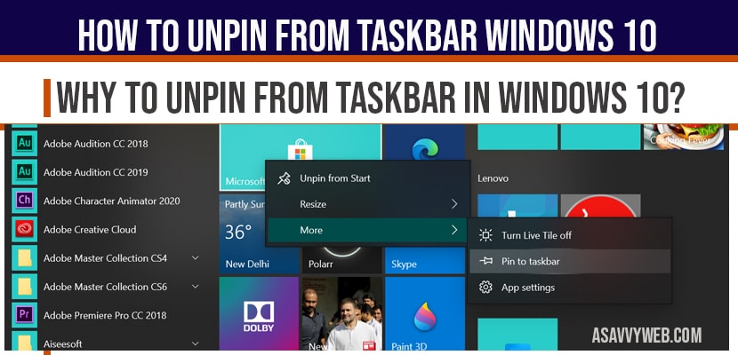 Pin in taskbar creates shortcuts on windows 10 taskbar menu where everything is personally organized, having lots of apps on taskbar in windows 10 makes you computer lagging and slow when your computer gets started or boots. It is always recommended to have only 4 to 5 taskbar pins on your windows 10 taskbar.