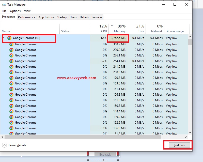 Click the name of the app you want to close and click the End task button in the bottom right corner of the Task Manager window.