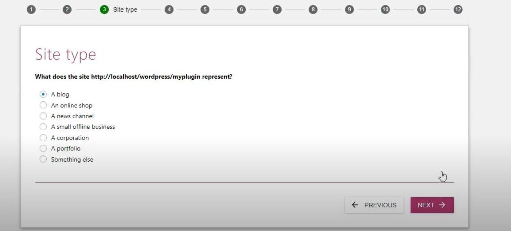 Now choose your site type from options provided by yoast which suits your website best: if it’s a blog ->choose blog.